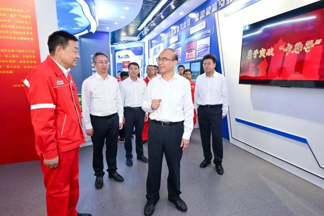 许勤来到大庆古龙页岩油勘探开发指挥部,与干部职工重温习近平总书记致大庆油田发现60周年贺信。