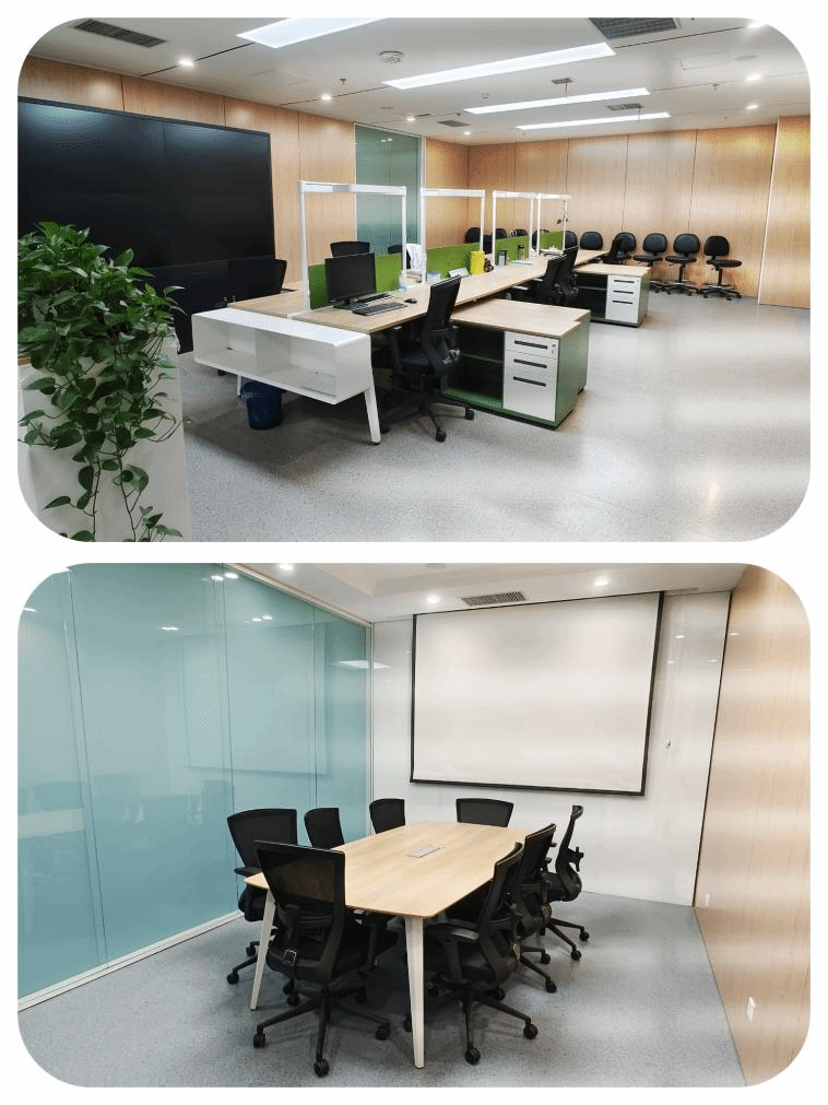 拥有8个可供科研人员整理数据、查阅文献、存放物品的办公位;1间可容纳10人左右的小型会议室并配有投影仪,可供科研团队、课题组召开小型会议。