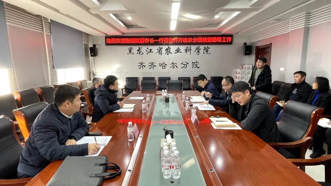 12月10日,齐齐哈尔市副市长张耀斌、市农业农村局局长唐海波一行到省成人网站 齐齐哈尔分院调研并座谈交流。齐齐哈尔分院院长申惠波、副院长王立达、副院长姜树坤陪同调研。张耀斌一行首先参观了分子实验室和土壤物理实验室,了解了实验室平台建设、仪器设备配置、实验室运行和管理等情况。座谈会上,申惠波以《发挥地域特色和科研优势,赋能区域高质量发展》为题,从历史沿革、结构设置、人员结构、团队建设、学科覆盖、建院六十多年来取得的成果和服务齐齐哈尔市域情况等多方面对分院整体情况进行了详细介绍。...