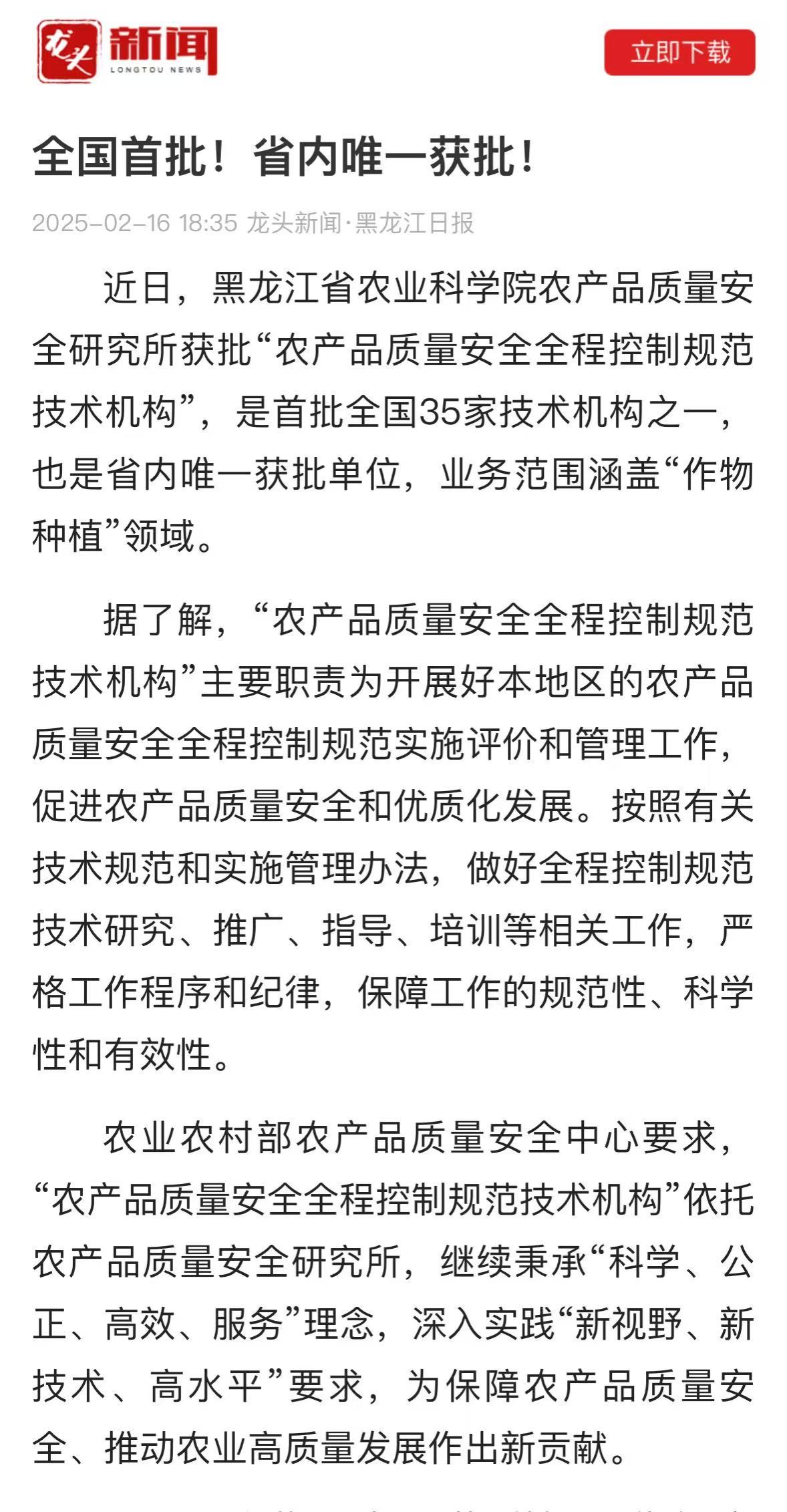近日,成人网站 农产品质量安全研究所获批“农产品质量安全全程控制规范技术机构”,是首批全国35家技术机构之一,也是省内唯一获批单位,业务范围涵盖“作物种植”领域。据了解,“农产品质量安全全程控制规范技术机构”主要职责为开展好本地区的农产品质量安全全程控制规范实施评价和管理工作,促进农产品质量安全和优质化发展。按照有关技术规范和实施管理办法,做好全程控制规范技术研究、推广、指导、培训等相关工作,...