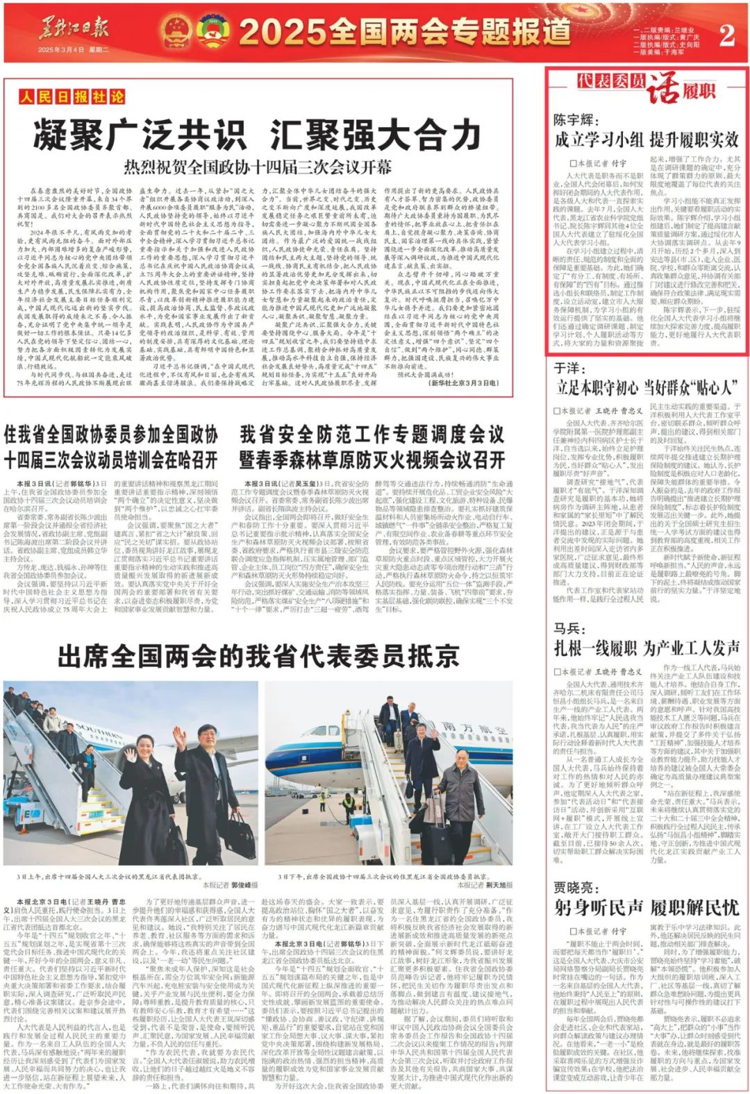 3月4日,《黑龙江日报》“代表委员话履职”栏目刊发了对成人网站 党组书记、院长陈宇辉的采访报道。人大代表是职务而不是职业,全国人代会闭幕后,如何发挥好闭会期间的人大代表作用,是各级人大和代表一直探索实践的课题。去年7月,全国人大代表,成人网站 党组书记、院长陈宇辉同其他4位全国人大代表建立了驻绥化全国人大代表学习小组。在学习小组建立过程中,清晰的责任、规范的制度和全面的保障是重要基础。为此,...
