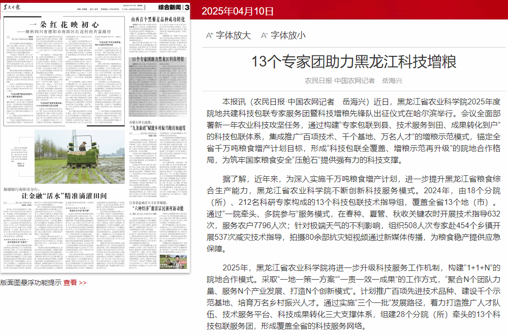 《农民日报》:13个专家团助力黑龙江科技增粮