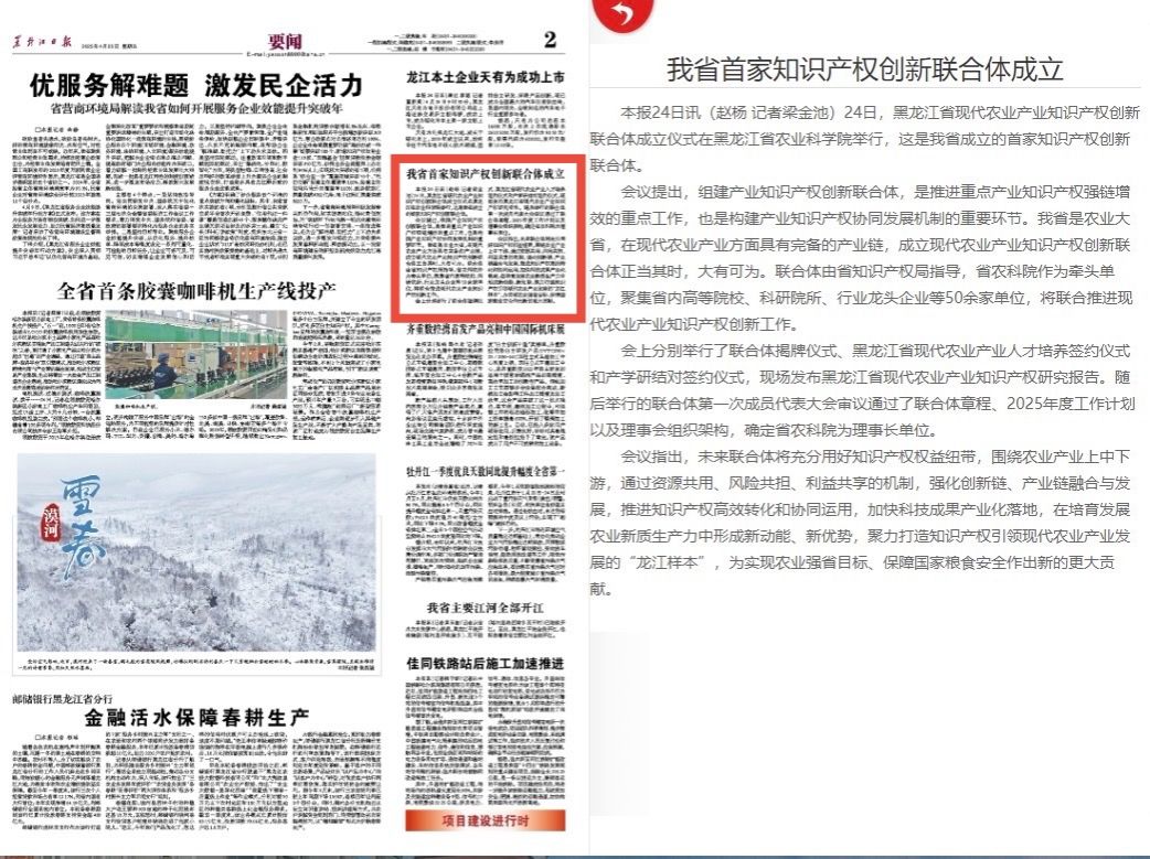 24日,黑龙江省现代农业产业知识产权创新联合体成立仪式在成人网站 举行,这是我省成立的首家知识产权创新联合体。会议提出,组建产业知识产权创新联合体,是推进重点产业知识产权强链增效的重点工作,也是构建产业知识产权协同发展机制的重要环节。我省是农业大省,在现代农业产业方面具有完备的产业链,成立现代农业产业知识产权创新联合体正当其时,大有可为。联合体由省知识产权局指导,成人网站 作为牵头单位,聚集省内高等院校、...