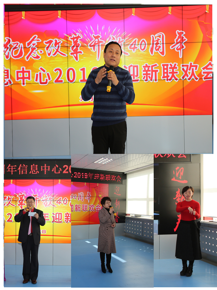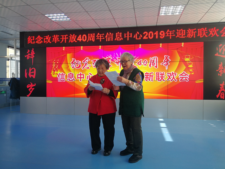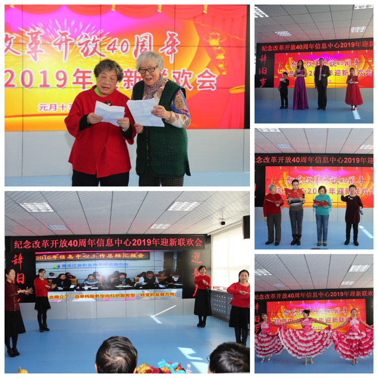 欢笑不断,精彩纷呈。回顾改革开放40年不平凡的经历,细数信息中心38载的峥嵘岁月,1月15日,信息中心老中青三代人欢聚一堂,共同回顾过去、展望2019年美好的新一年。副院长来永才,院办公室主任刘述彬、科研处处长柴永山、机关党委专职副书记于佰双、离退休职工工作处副处长陈凤山、原总农经师矫江与信息中心离退休老同志和在职职工共庆新年。 在和谐热烈的氛围中,来永才副院长发表了新年致辞。他向信息中心离退休职工和全体在职职工致以最诚挚的问候和新年的祝福,并为信息中心38年风雨历程中取得的各项成绩点赞。来永才副院长指出,2019年事业单位改革的大棋已经定盘,希望信息人在新的起点上以新的姿态迎来新的跨越。随后,他还高歌一曲《我爱北京天安门》,表达内心的喜悦之情。毕洪文主任代表所领导班子进行了满怀激情的发言。她对全院各级领导、各部门对信息中心的支持和厚爱表达了感激之情,并希望2019年信息中心能再创辉煌。