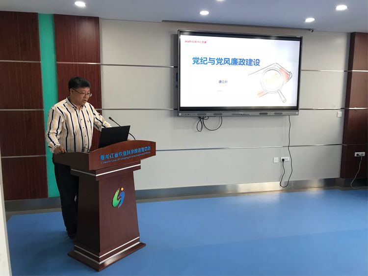 会上,在中心主任、党支部书记毕洪文的带领下,全体党员佩戴党徽,面对鲜红的党旗,重温入党誓词,庄严宣誓,再一次接受党性的洗礼。随后,中心副主任、党支部纪检委员唐立新以《党纪与党员廉政建设》为题为全体职工讲党课,从全面从严治党,党员在政治建设、思想建设、组织建设、纪律建设、作风建设等几方面职责进行讲解。中心副主任、党支部宣传委员郑妍妍以《如何建设高素质专业化科研干部队伍》为题为全体职工讲党课,并通过几个小游戏与大家分享了"木桶效应"的哲学含义和"驿站传书"的团队创造力。最后,中心党支部组织委员王萍领学新《党章》,新《党章》立足于新世纪新阶段的世情、国情和党情的新变化,着眼于完成改革发展关键时期党和国家面临的新任务,融入了科学发展观、中国特色社会主义制度等观点。