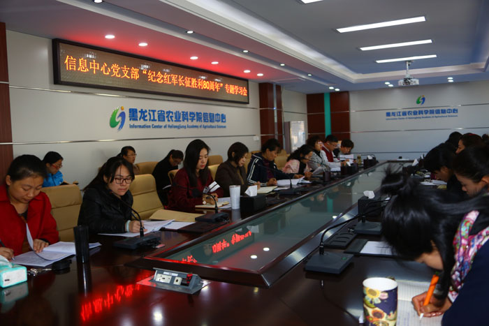 10月28日,信息中心党支部召开“纪念红军长征胜利80周年”专题学习会暨“两学一做”专题党课集中学习讨论会。全体党员通过学习习近平总书记在纪念红军长征胜利80周年大会上的讲话,感悟到不同时代长征精神的革命气息,受到了红色思想的熏陶。大家纷纷表示,要结合“两学一做”学习教育活动,将长征精神转化为精神动力,积极投身于黑龙江农业信息化服务的工作中,立足本职,创先争优,为农科院的发展做出新的贡献。