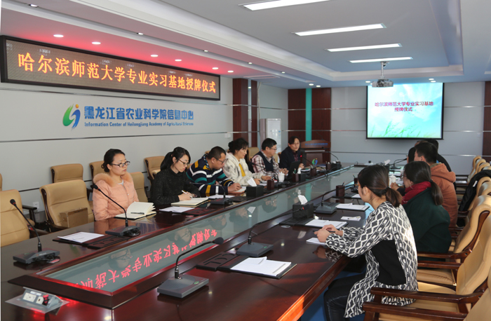 2016年11月22日下午,信息中心与哈尔滨师范大学经济学院实习基地授牌仪式在主楼10楼会议室成功举行。信息中心副主任唐立新、农业经济工程研究室主任何晶丽、副主任姜莹,哈尔滨师范大学经济学院院长过仕明,经济系副主任李桃、教师赵亮和实习生代表参加会议。信息中心青年学术委员会主任孙鸿雁主持会议。