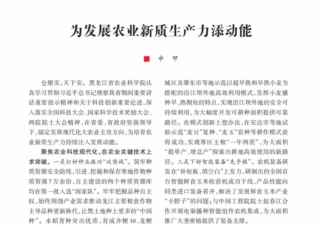 《奋斗》杂志刊发申甲署名文章《为发展农业新质生产力添动能》